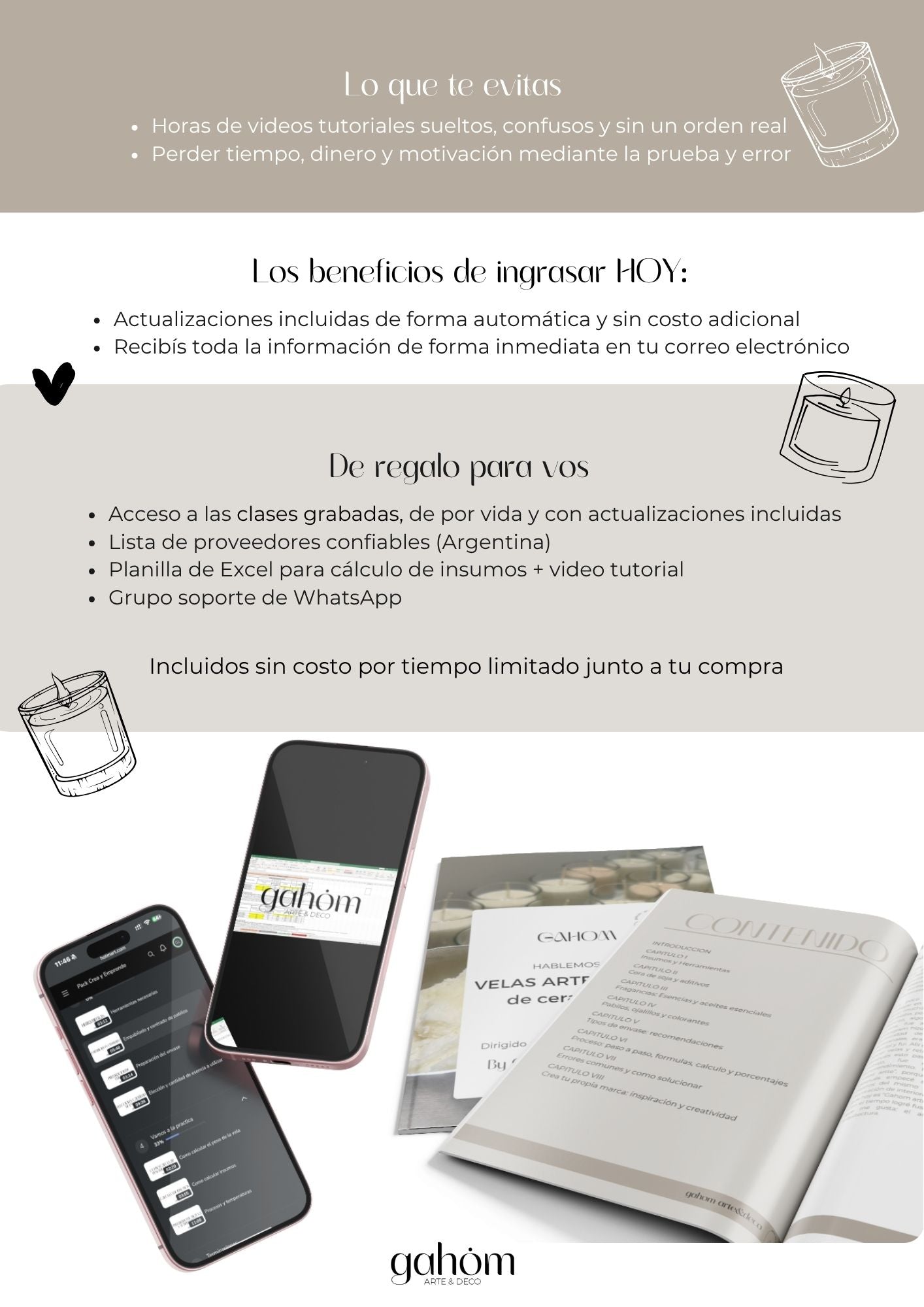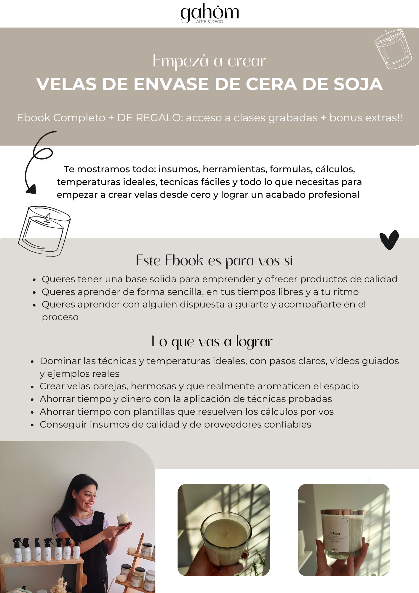 Aprende a crear velas de cera de soja y convertí un momento creativo en una fuente de ingresos reales con este EBOOK en formato PDF + DE REGALO: acceso a clases grabadas + plantilla de Excel para cálculo de insumos + Lista de proveedores confiables + grupo de apoyo de WhatsApp